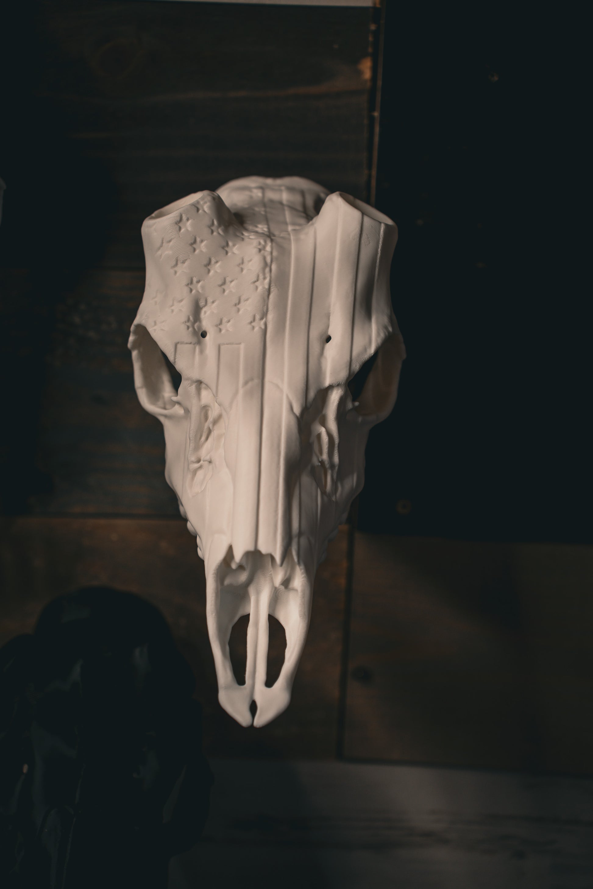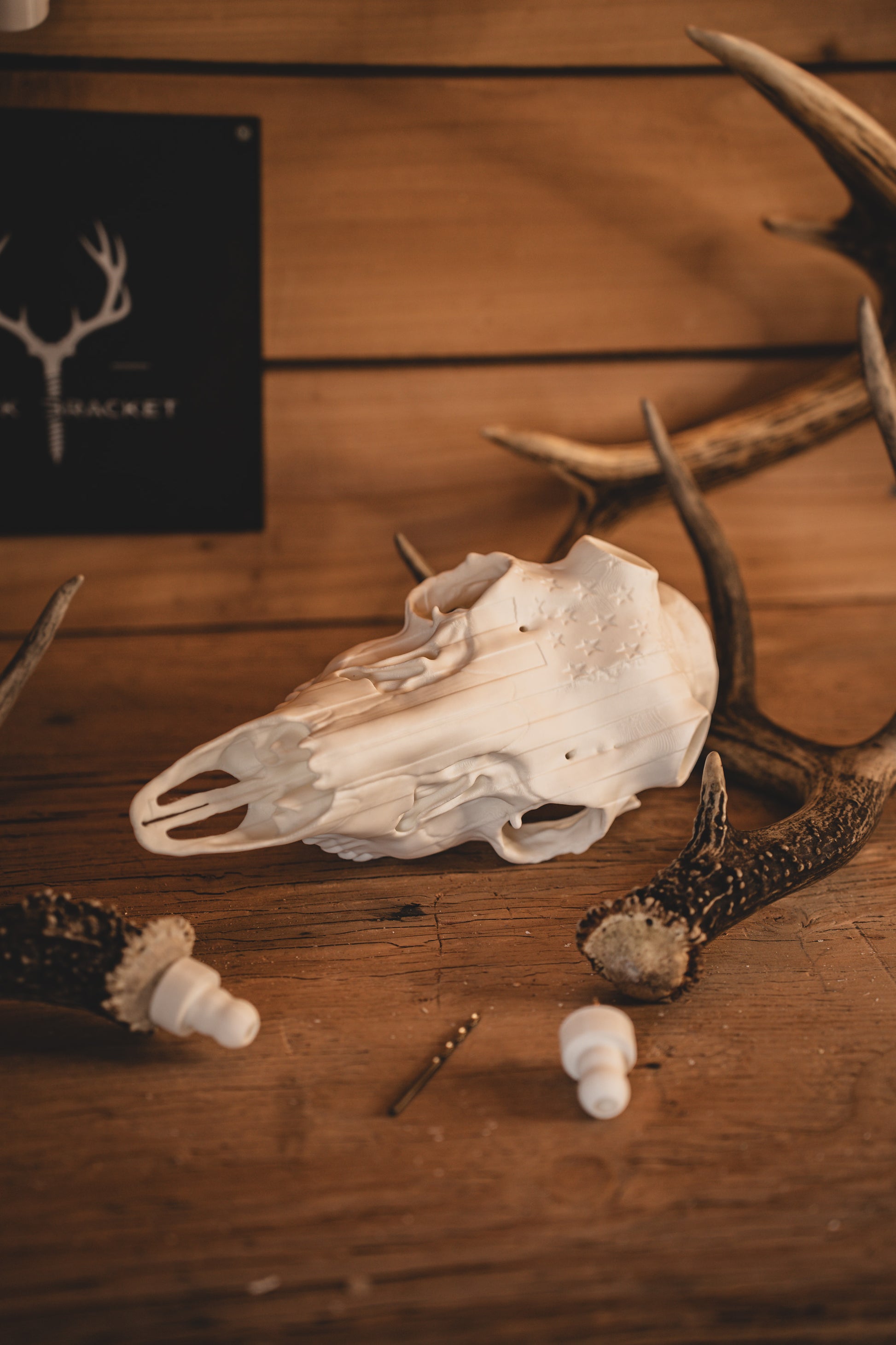 Molded from real deer skull scans, this mount adds an engraved American flag across the forehead, making your display stand out with meaning and strength.