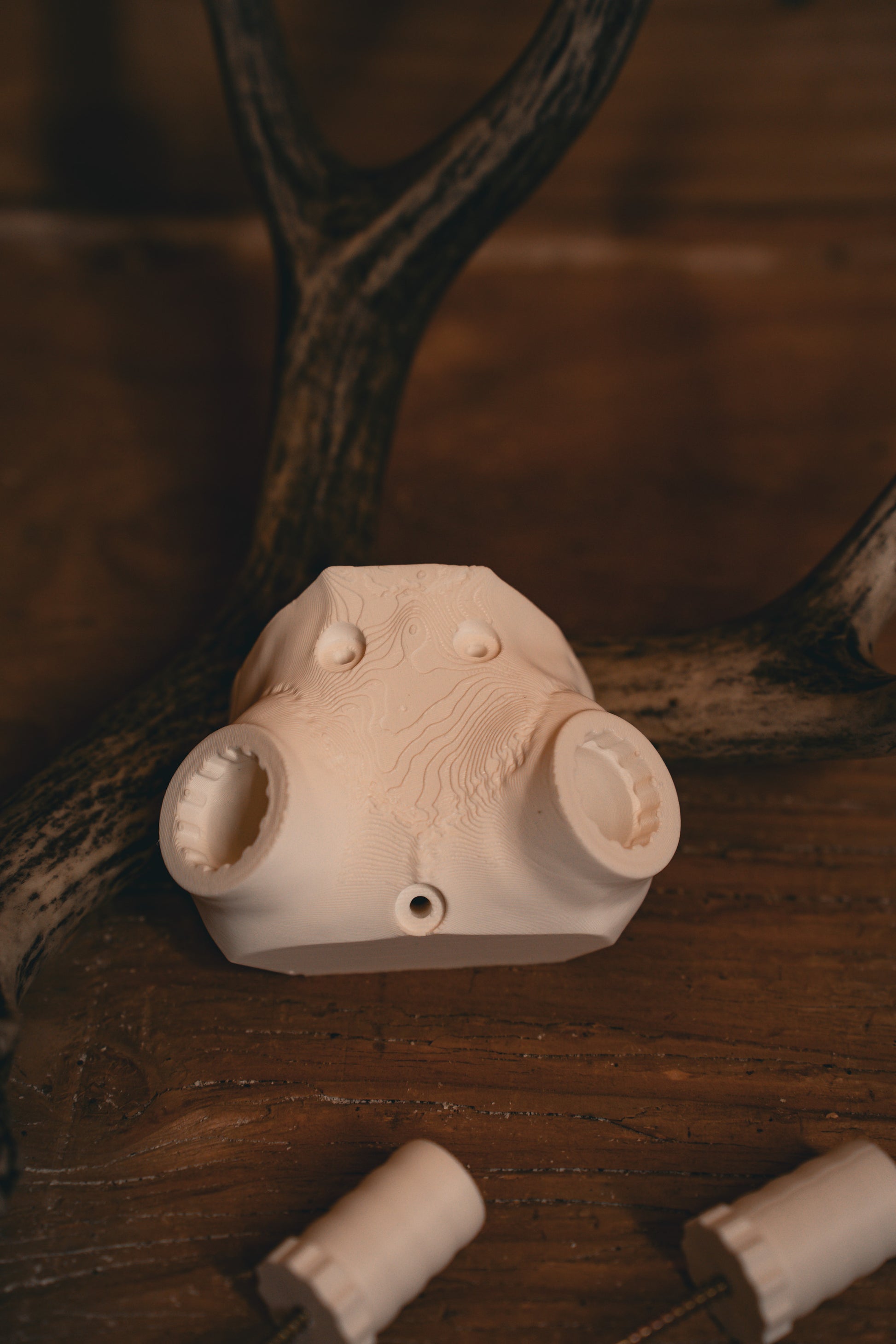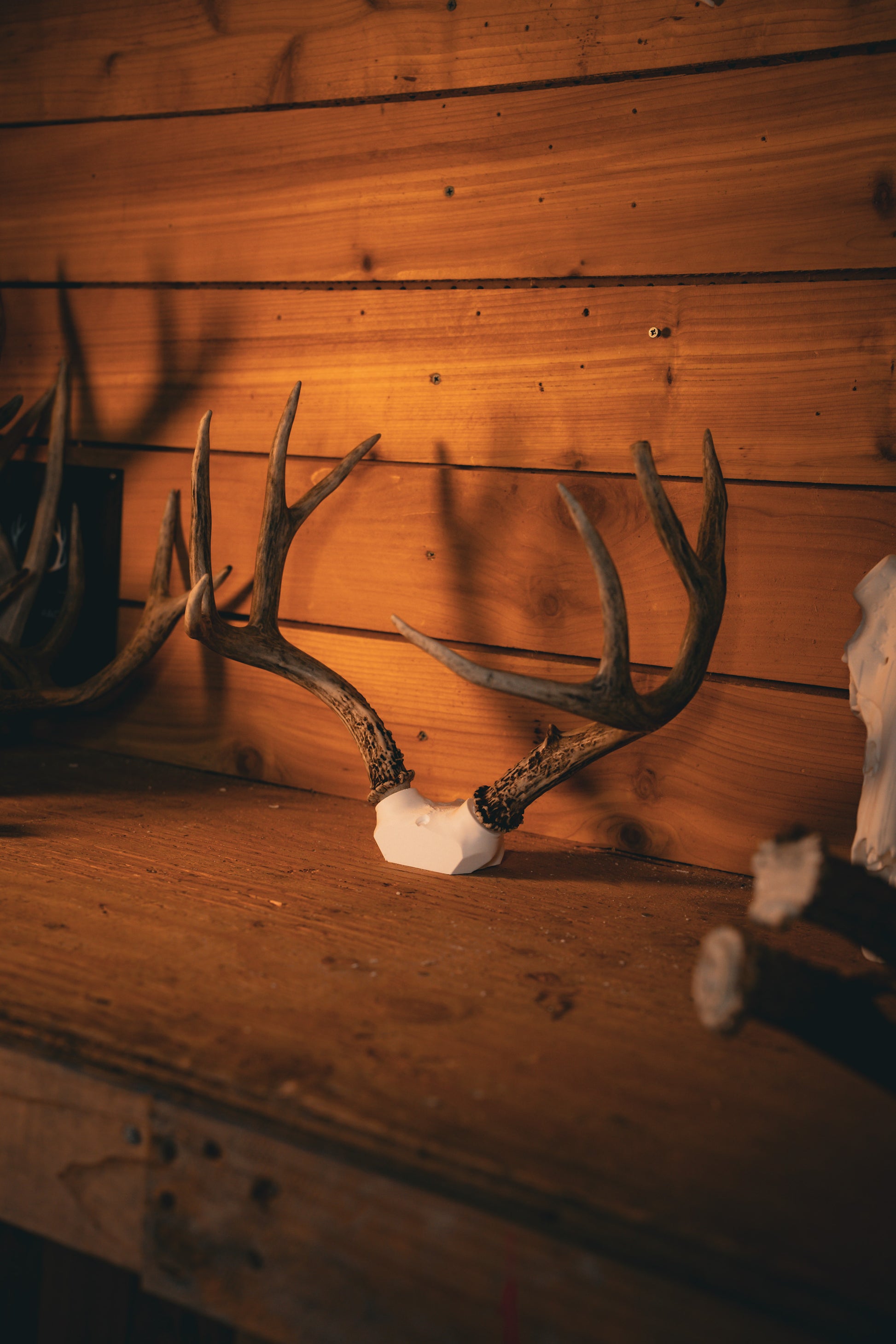 Specifically meant for screwing into a form. Perfect for shed antlers or cut-offs. 3 screw holes for secure fit. Patent pending Snap System allows antlers to be interchanged in seconds.