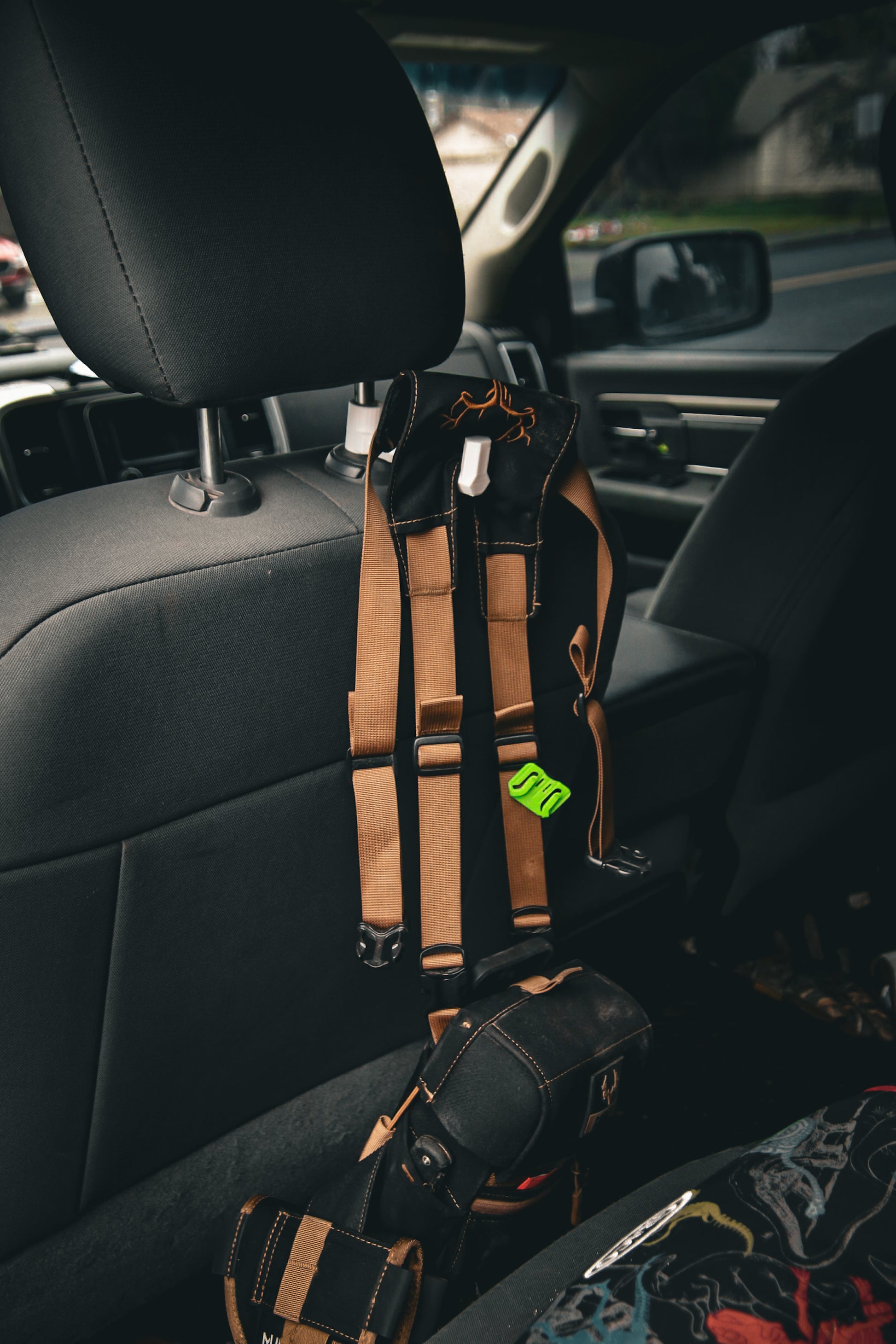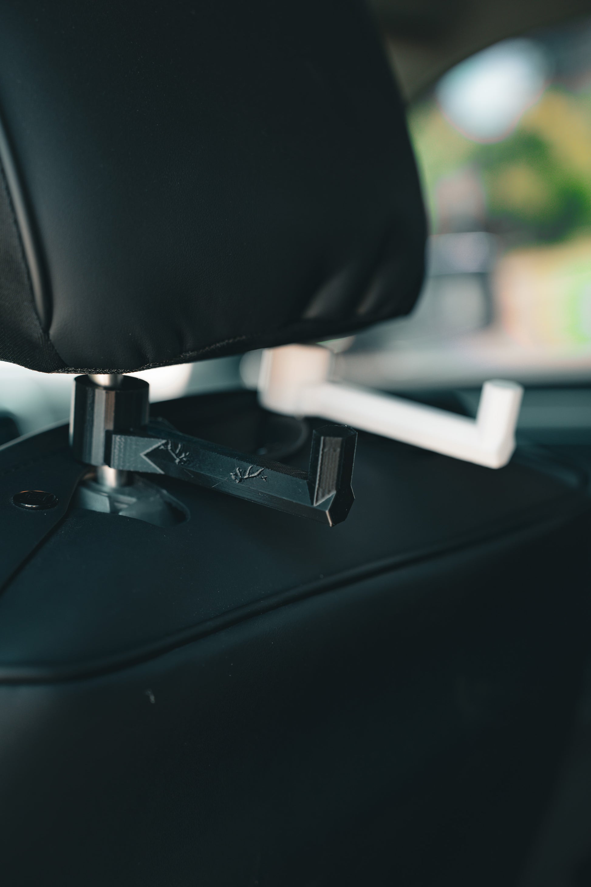 The Riser Rack is a rugged, USA-made hanger that slides right onto your headrest posts—no tools, no drilling. Perfect for holding your bow, backpack, bino harness, purse, jacket, or other essentials while keeping them off the floor and within easy reach.